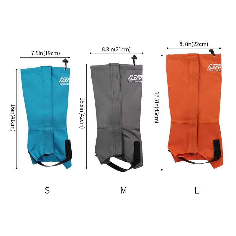 600D Oxford fabric, super wear-resistant, tear-resistant, windproof, waterproof coated fabric, waterproof index 3000mm, three sizes S, M, L, Velcro closure and opening, top elastic rope adjustment, bottom TPU adjustment belt, metal shoelace hook fixation.
