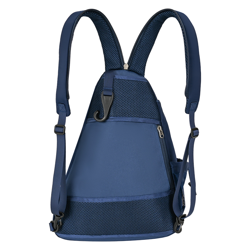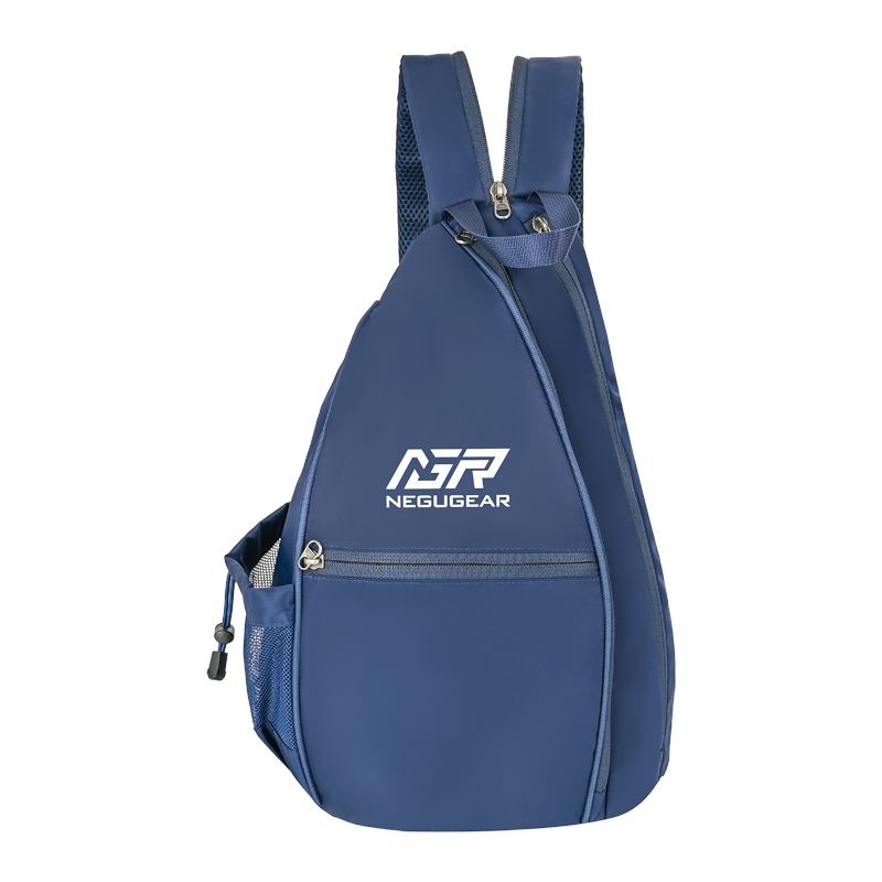 A Sport pickleball bag, the bag body 100% waterproof nylon fabric,hide-away fence hook ,versatile sling strap ,quick-release clip ,security pocket ,padded main compartment felt-lined tech pocket ,side bottle pocket ,personal pocket .
