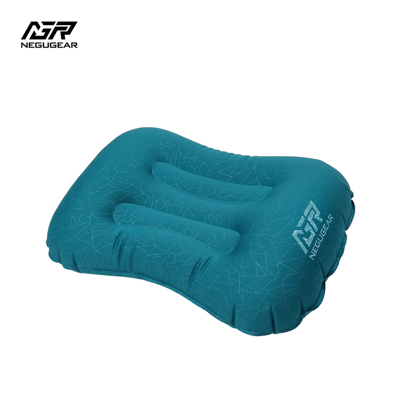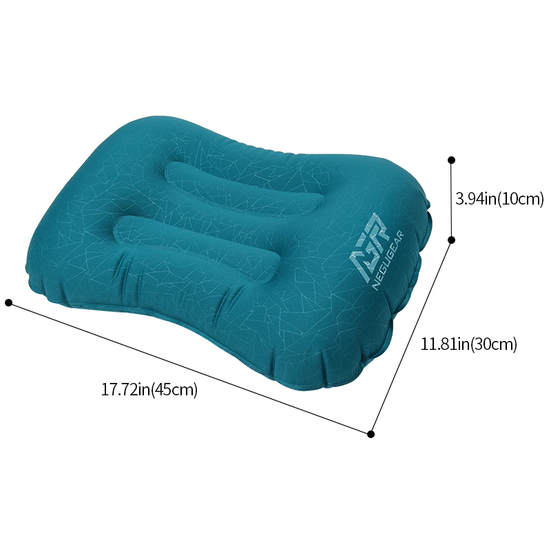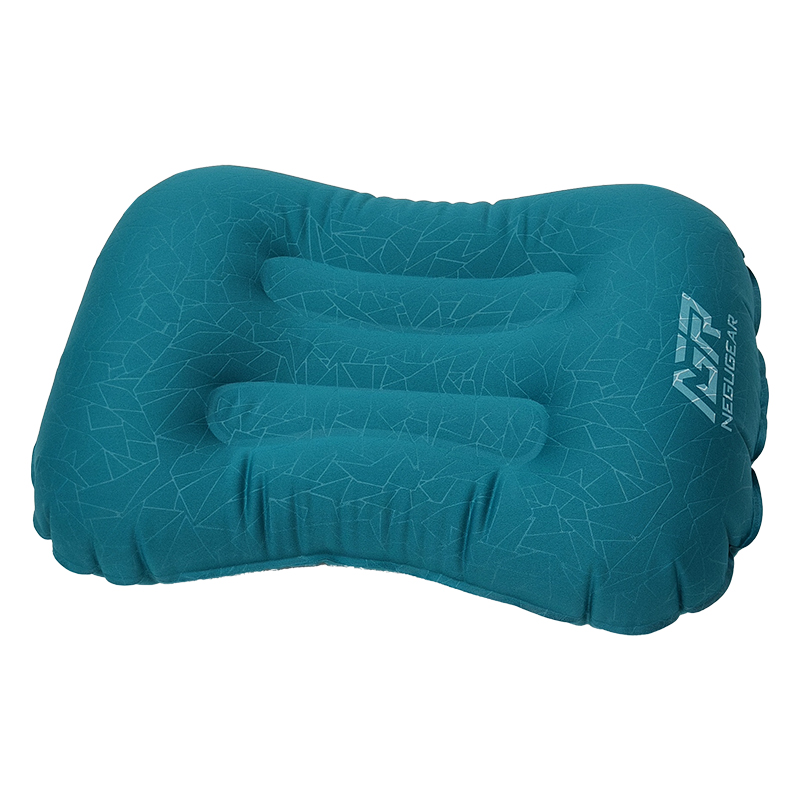 Pillow inflating SP019,NEGUGEARSP019,After inflation with 115g :45*30*10cm. Storage dimensions: 5.1in(13cm)*3.1in(8cm),Inflatable pillow, peacock blue elastic fabric TPU film printed on both sides, ABS plastic air nozzle, black mesh bag,TPU elastic composite fabric, soft, highly elastic, comfortable, U-shaped neck curve fitting design, small storage volume only the size of the palm, one hole for air intake and deflation, good sealing at the seams, not easy to leak and long service life.