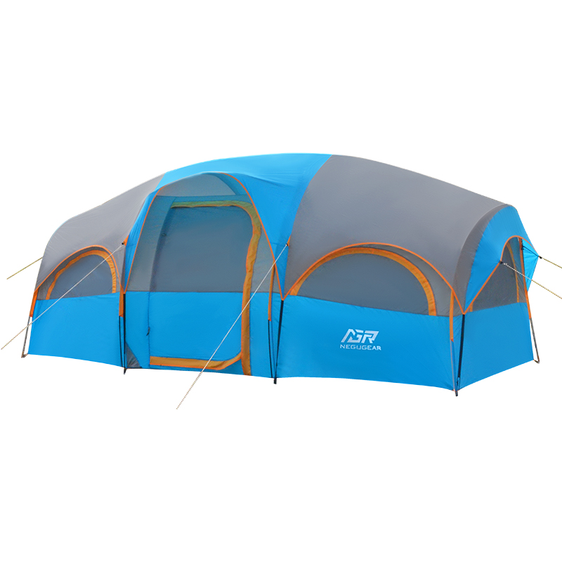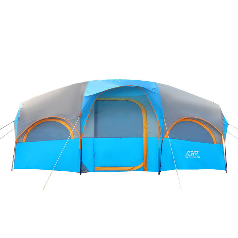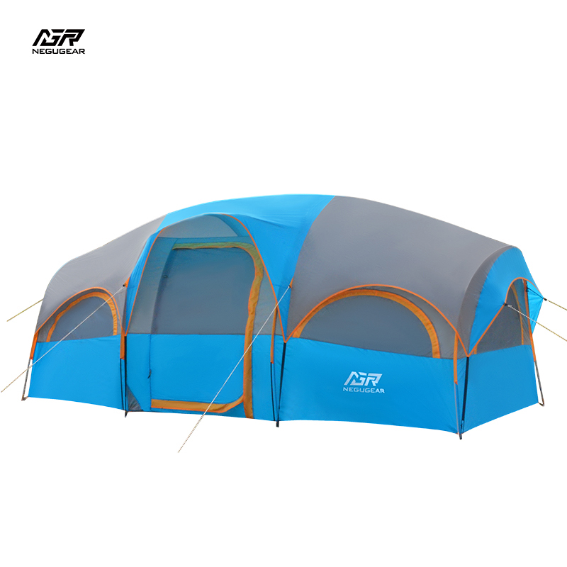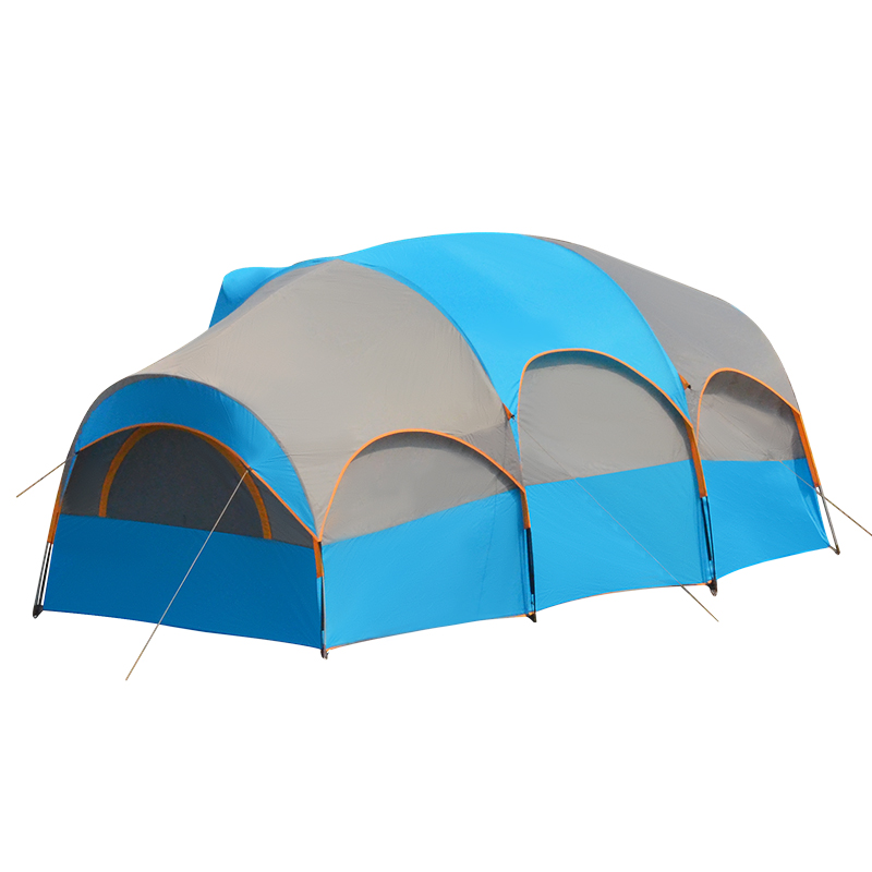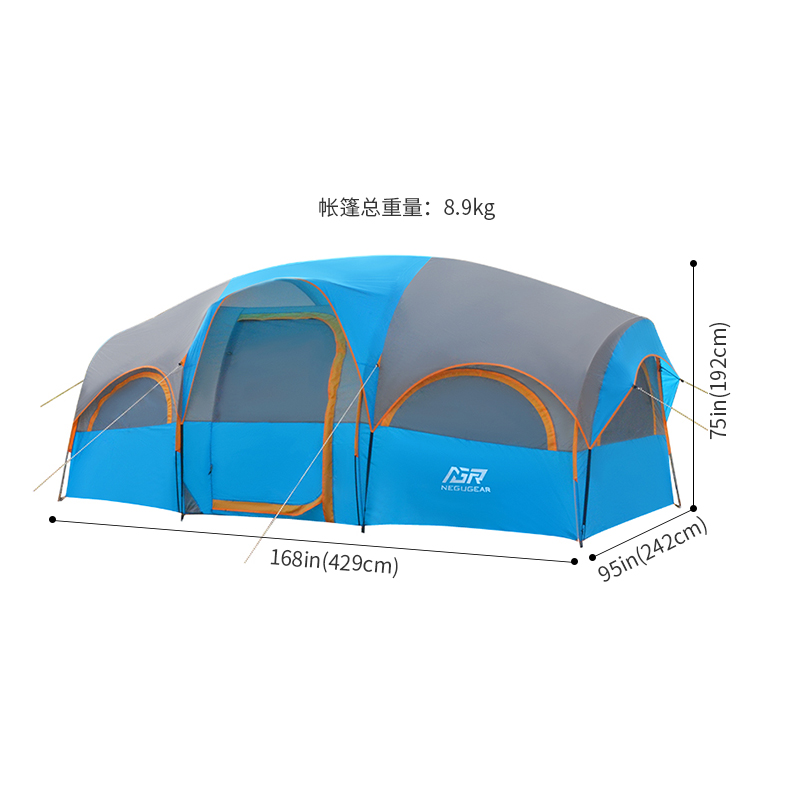 8-10 person camping tent you and your family can camp in comfort,Sets up in under 5 minutes (based on average setup time with 2 people),Nearly vertical walls provide more headroom,Tent Floor Tent Floor Area:107sq.ft(10sq.m)Tent Weight :8.9kg,19.6lbTent # of Windows :4,Tent Rainfly :Yes,Carry Bag/Case Included :Yes,Large door awnings provide more weather protection and better airflow.Material: 210T polyester fabric waterproof 2000, PE cloth, mesh cloth Support: fiberglass poles ,accessories: 16 “7” type iron nails, 8 PP wind ropes 2M.Guangzhou Ge Pu Outdoor Gear Technology Co., Ltd