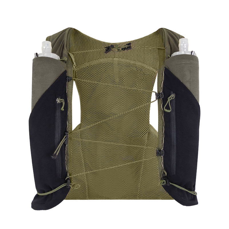 Main fabric:Nylon Spandex,Made of strong, lightweight silnylon and breathable mesh,Water resistant but fully breathable back panel for maximum ventilation,4 hooks and bungee loops secure trekking poles and can be attached at the front or back of the vest..